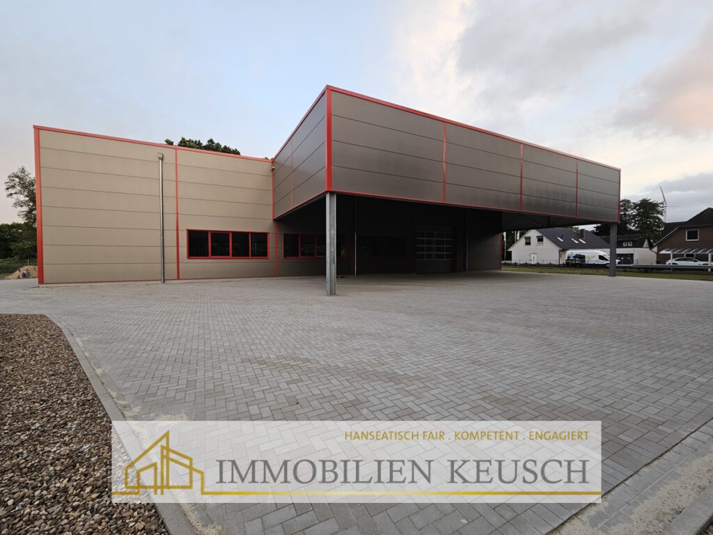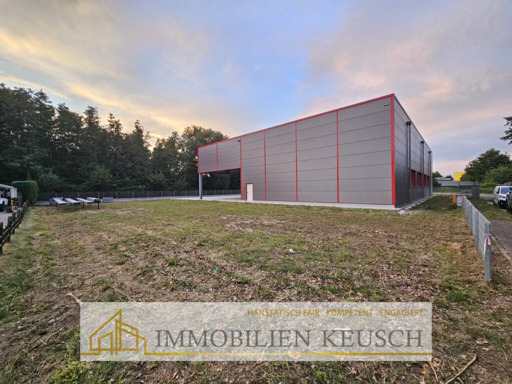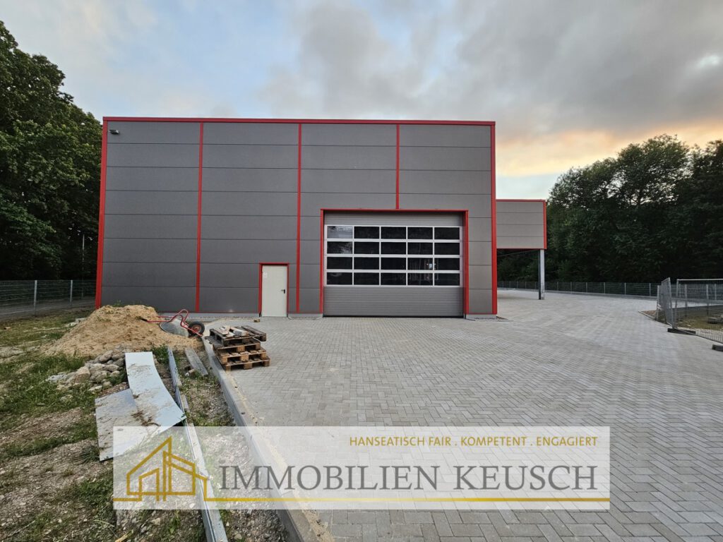 TOP-verkehrsgünstige Lage-NEUE Gewerbehalle 600qm + 244qm Vordach, 2 Rolltore, Hausbau noch möglich!